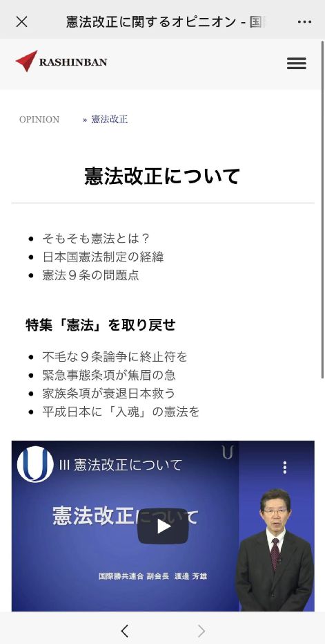 UC积极推动日本宪法修正,旗下反共组织“国際勝共連合” 建议的宪法修正建议都反映到了自民党的修宪议程里。
