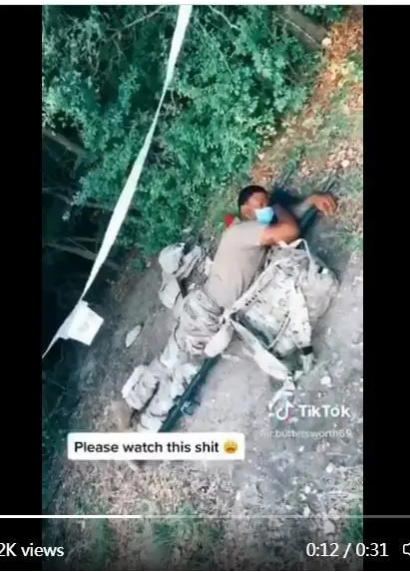 近期,推特上热播一段视频,一名疑似感染的黑人士兵被其他战友扔到荒山隔离,他趴在担架上,口罩上印有特别标记,身边还拉起了隔离线。录制视频的士兵绝望地喊道:“如果你认为胡德堡屠杀事件还不够悲惨的话,那么请看我们如何对待感染新冠的自己人”,而有的士兵竟大叫这位黑人士兵“该死”!