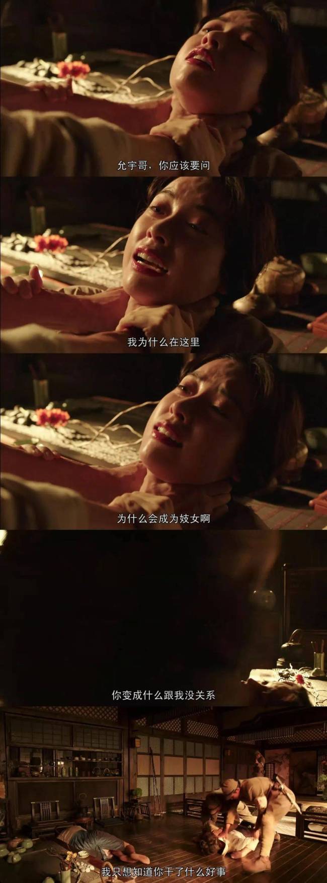 曾几何时,郑素律听命于母亲,给驻扎在朝鲜的日本最厉害的军官奉献歌舞后,却拒绝去陪睡,她当时还有点清高和廉耻心,并不想去当一名卖身求荣的娼妓。