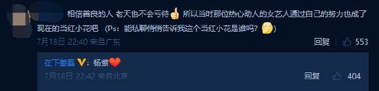 【姜磊说杨紫曾不顾劝阻帮助老奶奶】18日,前欢瑞副总裁姜磊分享了一个感动他多年的故事:“十几年前,一个现在当红小花,有天倾盆大雨,回家全身脏兮兮的,问她去哪里了也不说。后来才知道,她回家时看到地下车库的通道上,一个拉着一大车垃圾箱子和瓶子的老奶奶,她不顾朋友劝阻的冲过去帮忙,到家就变成了这个模样。有的人就是天生善良。”并在评论区透露该小花是杨紫。
