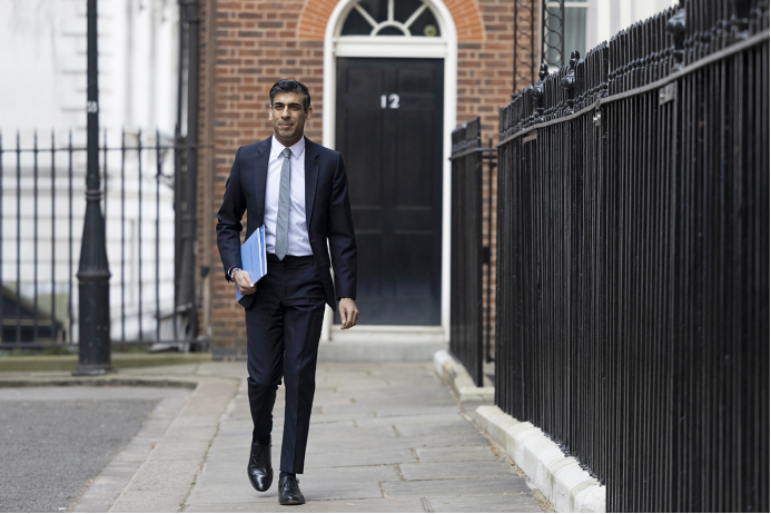 2022年3月23日,英国财政大臣苏纳克在伦敦前往议会。图|新华社发(英国首相府供图)