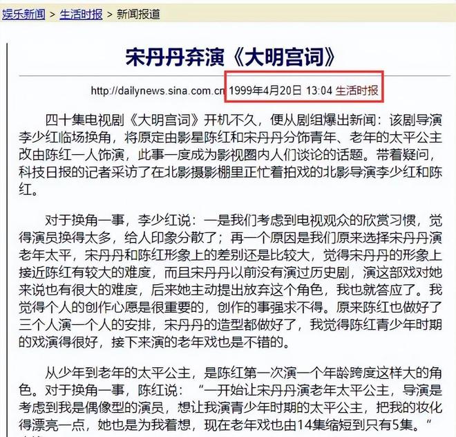 但临开机前,宋丹丹请辞了该角色,一方面,她觉得自己没怎么演过历史剧,怕驾驭不了,另一方面她要对接的是大美人陈红,她十分惶恐。
