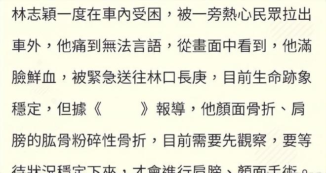 不过在这种情况下能够捡回一条命已经是非常不容易的了,而林志颖的家人在林志颖的伤情稳定之后也头一时间露面。林志颖的弟弟开表了会,在发布会现场就和大家说明了林志颖如今的伤情,表示现在的这几天是最关键的时期。