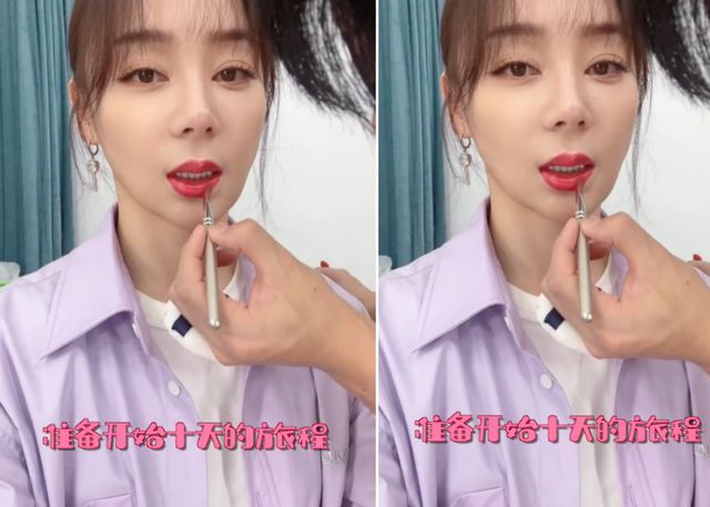 只见袁姗姗对着镜头,化妆师正在为她涂口红,相比于之前可以说是瘦了很多,一张精致的小v脸,尖尖的下巴楚楚动人。不过整体看下来鼻子好像有一点突兀,不知道是高光原因还是什么,鼻头非常亮。