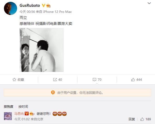 8月11日,张哲轩发文为自己庆生,并为女友马思纯宣传电影,配文:“而立感谢陪伴祝摄影师电影票房大卖”。从张哲轩的表述中可知,这张照片是马思纯所拍摄。马思纯也现身评论区回复称“谢谢您咧!”还附上小蛋糕的表情。