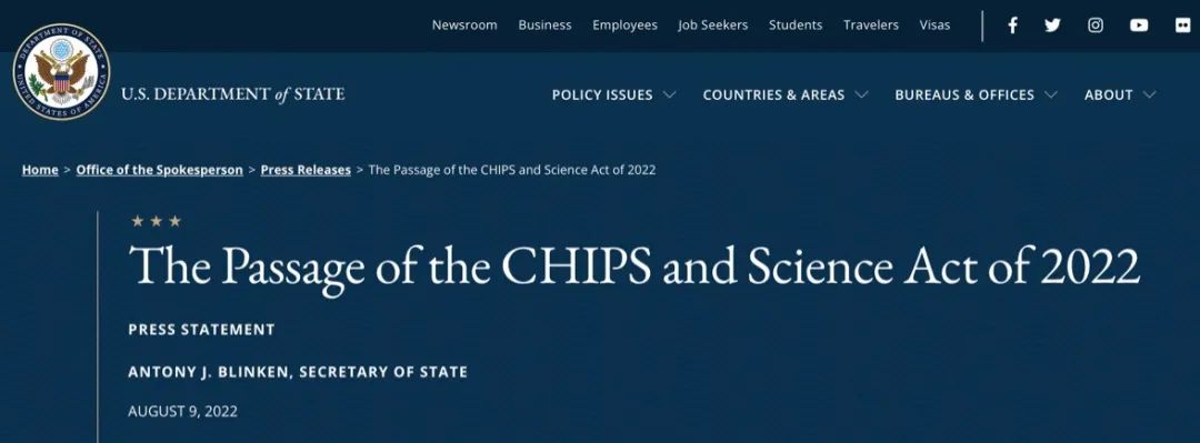 拜登夸佩洛西:“就是天崩地裂,你也能搞定法案。” 很明显,法案很大程度上就是冲着中国来的。美国《2022年芯片和科学法案》正式签署成法。图源:美国国务院网站美国着急砸这么多钱到芯片产业,有其历史和现实背景:上世纪90年代,美国芯片制造产能在全球市场中占比一度高达37%,现在跌到了12%。《芯片法案》就是要鼓励芯片企业回美国建产线、扩产能,重新壮大美国芯片制造业。据白宫声明,法案将为美国芯片制造、研发及劳动力发展提供527亿美元补贴,给予在美设立芯片工厂的企业25%的投资税收优惠,同时拨款约2000亿美元,促进美国未来10年在人工智能、量子计算等领域的科研创新。林林总总加起来,涉及资金超2800亿美元。可这计划虽大,落实起来还是“胡萝卜+大棒”策略——“胡萝卜”即拿钱砸,527亿美元成立“四大基金”,分别用于芯片制造、芯片科技安全和创新、芯片劳动力发展及教育、国防专用芯片;“大棒”更是直接指向中国。比如,法案禁止获得美国补贴的公司在中国大幅增产先进制程芯片,限期10年,违反禁令者或需全额退还补贴款项;法案同时禁止联邦激励基金接受者在“对美国构成国家安全威胁的特定国家”扩大半导体产能。说白了,拿了这笔补贴,意味着10年内不能在中国大陆投资更高水平芯片。白宫新闻发言人说,《芯片法案》就 是要吸引半导体制造企业更多地投资美国而非中国。问题是,芯片是国际化产业,领先的都是跨国公司。不少外媒认为,《芯片法案》的根本目的,就是让台积电、三星、英特尔等跨国芯片企业在中美之间“选边站”。