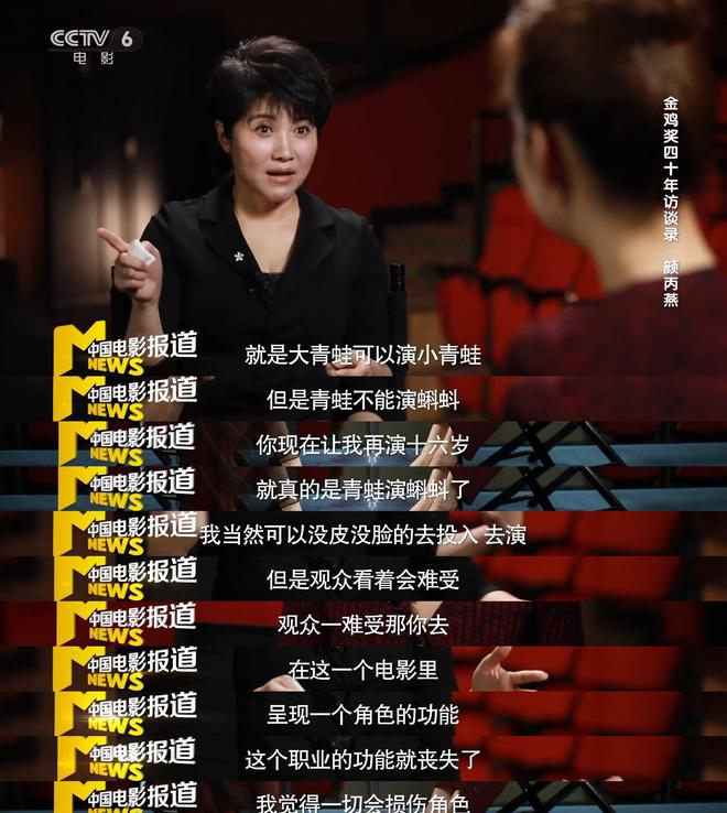 她始终认为,“大青蛙可以演小青蛙,但绝对演不了蝌蚪,如果强行饰演,观众觉得尴尬,那么演员这条路也走到头了”。