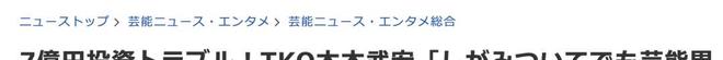 今年日本有一个很著名的案子,搞笑双人组“TKO”成员木本武宏,被骗了七亿日元,约合3514万元人民币。这个金额大概算得上娱乐圈被骗案例的天花板了吧。