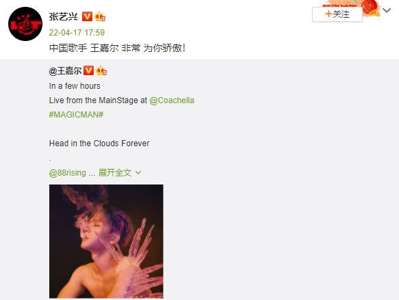 4月17日,王嘉尔现身科切拉音乐节,他以《100ways》、《Blow》和《California》三首热门单曲高燃开唱,全场气氛热烈。