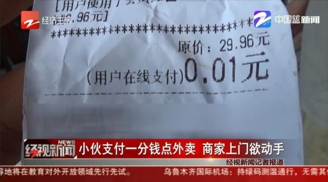 罚300!杭州一小伙点外卖用红包后只付1分钱,险被上门的老板打