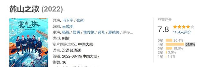 一部硬核的工业题材剧集有人看吗?中国视听大数据的数据显示,该剧在CCTV-1播出以来,以每集平均到达率2.167%位列黄金档第二的位置,豆瓣开分达到7.8分,给出四星的用户达到54.9%。