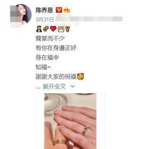 2022年陈乔恩大方晒出与艾伦的婚戒