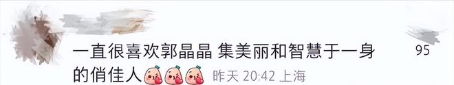 此前郭晶晶分享的动态很多都与运动有关,这次户外爬山也引得不少网友纷纷评论“接地气“、”大气美、很从容 “,网友言辞之中不乏赞美,表现出对郭晶晶的喜爱。