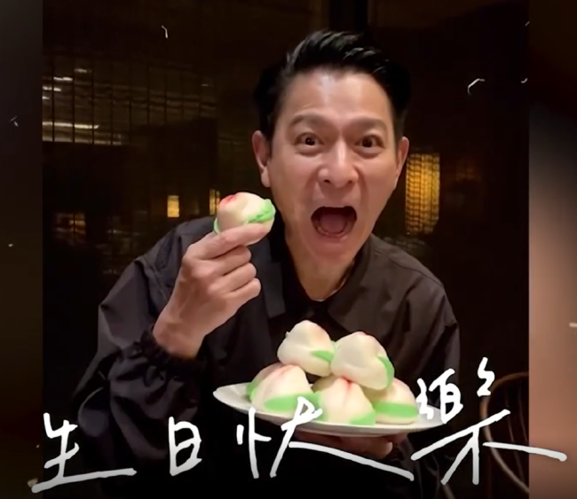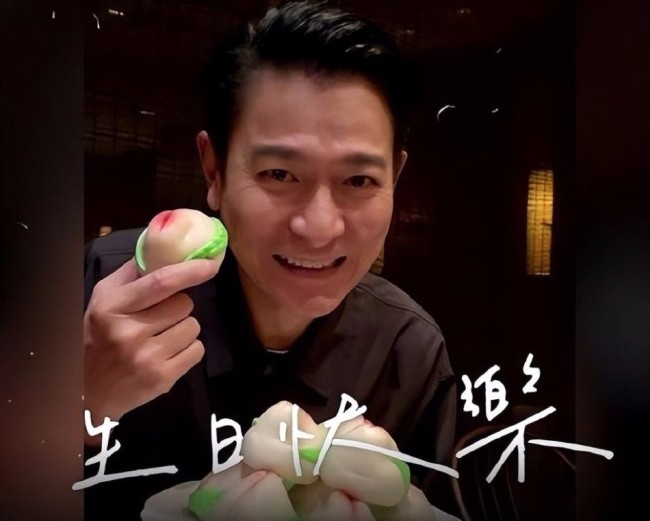 刘德华61岁庆生照曝光 与“寿桃”拍照露灿烂笑容