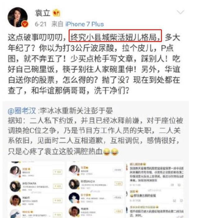事后袁立更是发文“她是柴火妞”