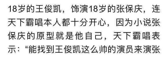 就连热门小说家天下霸唱也说王俊凯能演张保庆很开心,因为张保庆的原型是他本人。