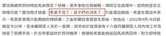 婚变早有预兆,郑浩南去年12月份打电话联系妻子,想要通知妻子自己会在圣诞节之前回去,妻子直接挂断了电话。