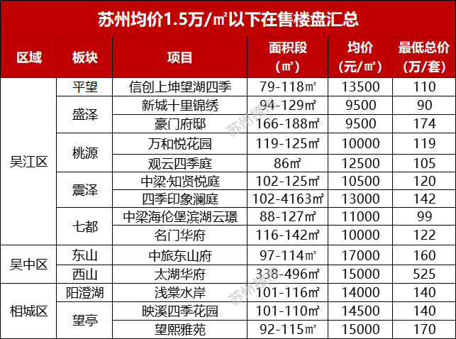 第六层房价在1.5-2万/㎡的板块比较多,这也是刚需朋友能接受的价格。从目前板块上来看,吴江运东、吴中太湖度假区、相城苏相合作区等板块是比较热门的区域。