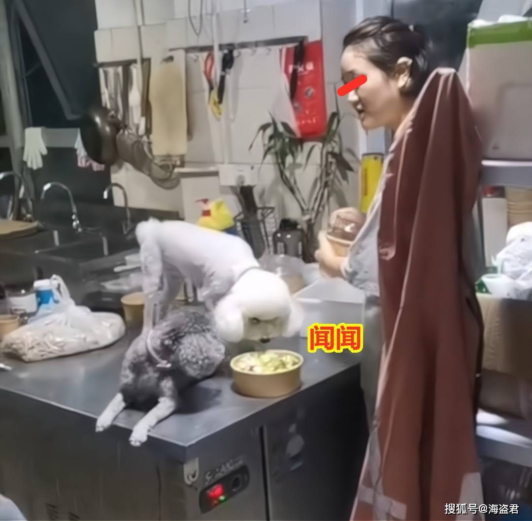 原标题:外卖员曝光轻食店,老板娘徒手抓菜,2只狗站在操作台上又闻又舔