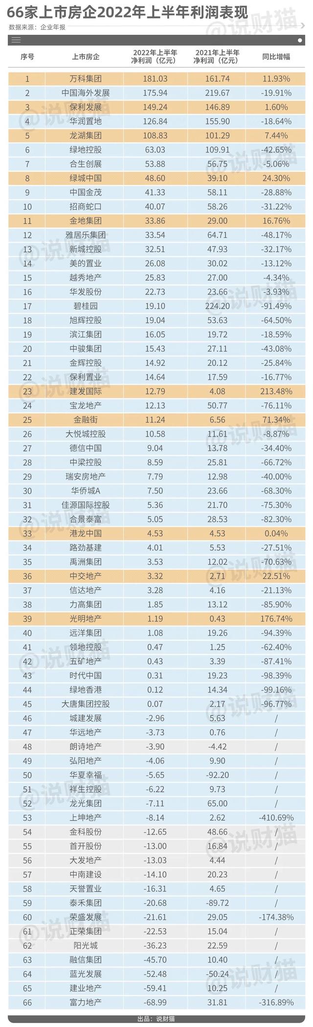 上半年,66家房企中,只有45家实现了盈利,剩下的21家,都在亏钱,合共亏损达到438亿。