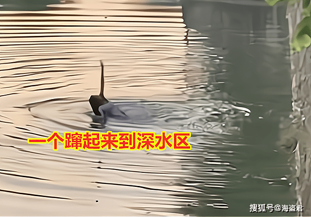 女子坠河的地方原本是河边的浅水区,她向后一个蹿起来到了深水区,身体开始不由自主往下沉。