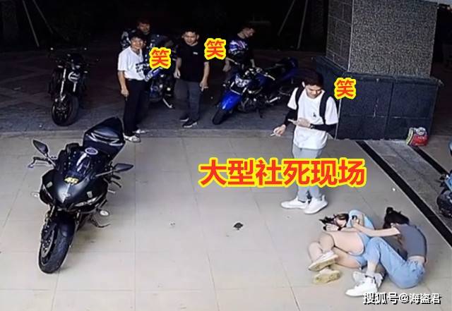 难道两个女生真的是故意摔倒,好引起旁边男生的注意吗?仔细看摔倒的过程,这种结论应该不成立。
