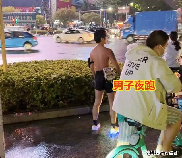 男子夜跑一身装扮“光彩夺目”,跑步姿态分外妖娆,鞋子闪闪发光