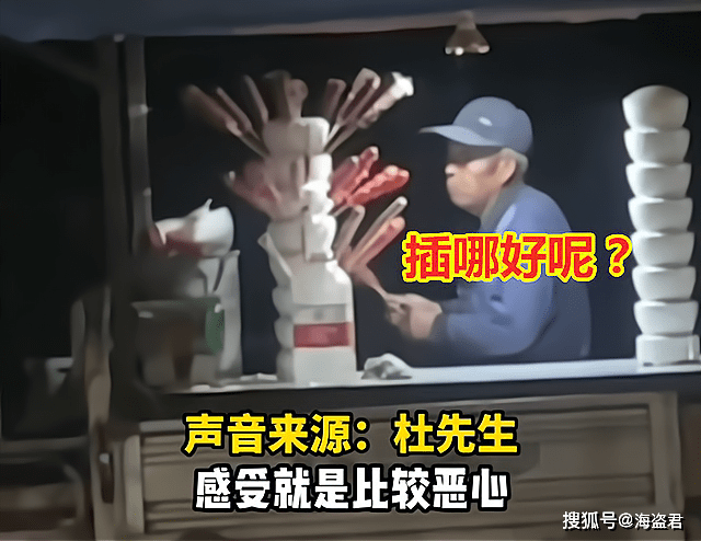 在小杜拍摄的画面中可以看到,大爷一边转着糖葫芦,一边朝糖葫芦喷水。大爷撅着嘴,有很明显的白色液体从大爷嘴里喷出。