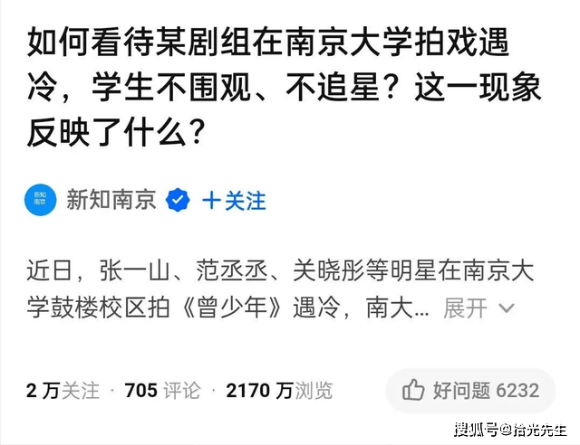 首先,该剧组集结了张一山、关晓彤、范丞丞3位顶流明星,但到了南大后,却与之前引起大量粉丝路人围观、追捧不同。