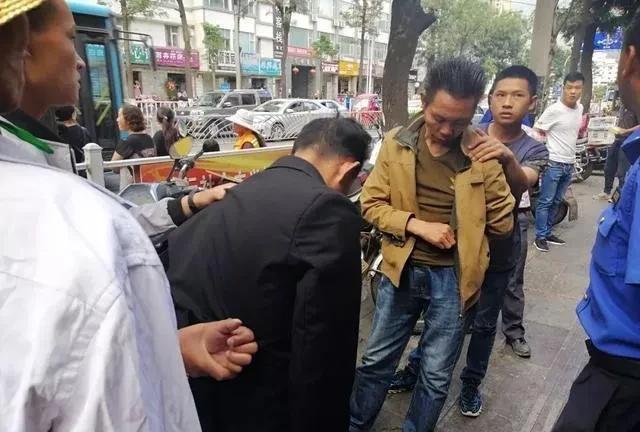 与此同时,被抢老人也追了过来,看到两个中年男子被抓住,老人对民警说道:“这两个男的抢了我1000块钱,是这三个年轻人帮我抓到了他们!”