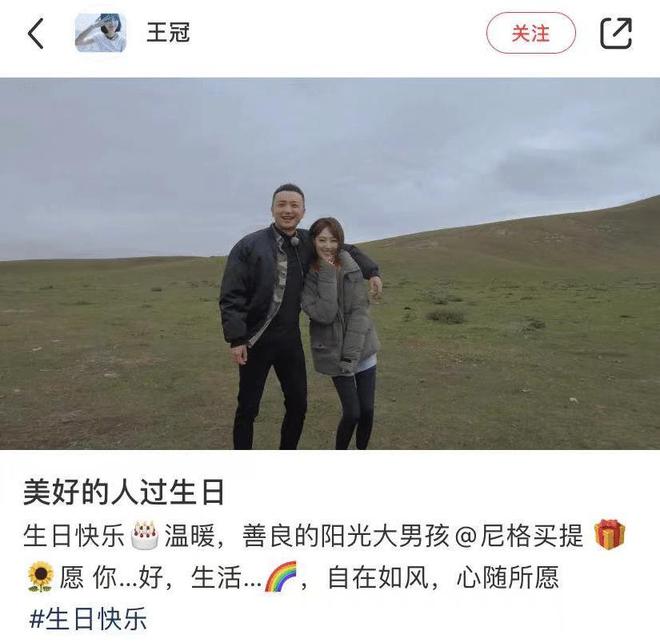 今年4月,主持人王冠在社交平台晒出了一张,为小尼庆生的照片,