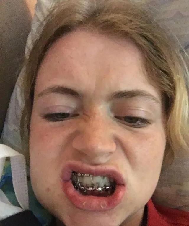 诊所没有拒绝妹纸的要求,很娴熟地帮她缝上了可以让上下排牙齿闭合的一组短线。