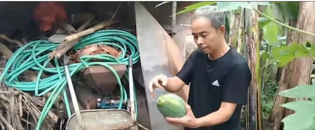 阿峰的老丈人还特别爱研究美食,去菜园子里摘木瓜,做木瓜生,这是越南的一种凉拌美食。