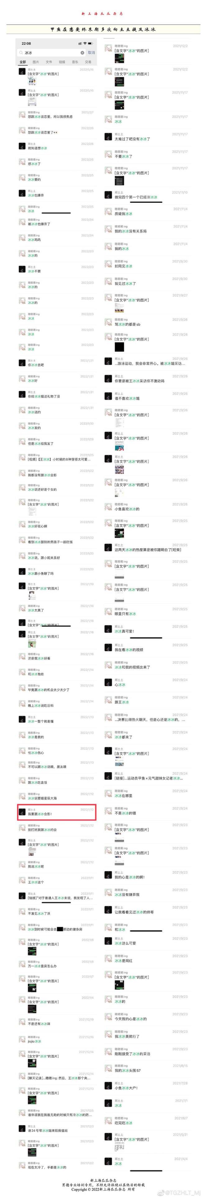 22年1月,徐嘉余在上海录制《闪闪发光的少年》,土土去探班,被要求说是好朋友,作为粉丝和王冰冰合影。工作结束后,徐嘉余、土土、王冰冰以及工作人员还一起吃了饭。此后,徐嘉余在与土土的聊天中反复提及王冰冰,并多次向土土强调《闪少》是“恋综”,带头磕自己和王冰冰的“cp”。从曝光的聊天记录中可以看到,徐嘉余多次明确表达“我是冰冰的”“不想让冰冰知道我有女朋友”。