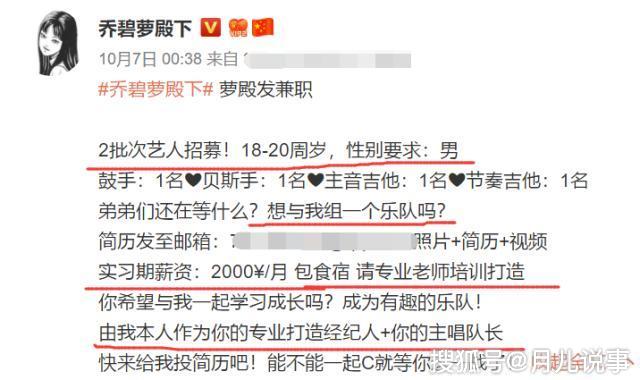 原标题:乔碧萝组建乐队只招募男艺人,身兼经纪人和主唱队长,评论亮了