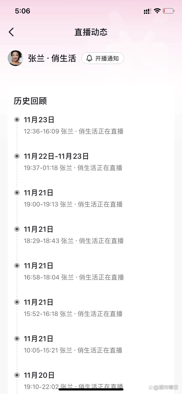 11月22日,65岁的张兰更是从当晚7:30一路直播到隔天的凌晨1点多,足见有多拼!