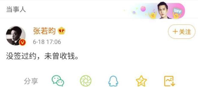 张若昀对此事知情与否尚未可知,但从他“没签过约,未曾收钱”的回应来看,他是不愿意接受这样类似“工具人”一样的工作的。