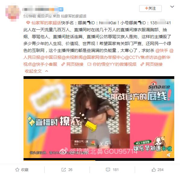 也有进行电话实名举报的,对于正在陕北拍戏的娜美,不少网友举报其直播内容低俗,应该删除相关的戏份。