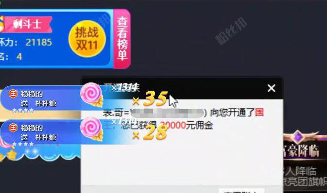 众所周知阿哲又收获了一名国王土豪,据说这位新大哥来自外站,号里备有百万余额。在阿哲直播间开通国王之后阿哲也是激动万分,给大哥走了两遍曲,还再次以阿哲直播间独有的“礼炮”仪式感谢了这位新大哥。