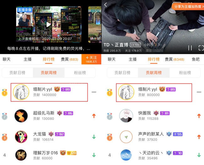来到斗鱼直播平台后,神豪“塌制片yll”也是只刷“超级火箭”礼物。截止目前,这位神豪对斗鱼主播灵魂刀神、薛叫兽、TD丶正直博、339户外、旭旭宝宝等都进行了豪刷打赏,并且占据大部分主播“榜一”位置。
