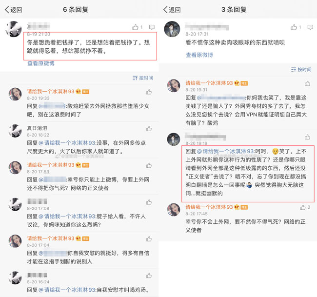 有一些网友开始攻击“请给我一个冰淇淋”,称她在网络上靠一些露rou手段博取眼球不知是悲还是喜。