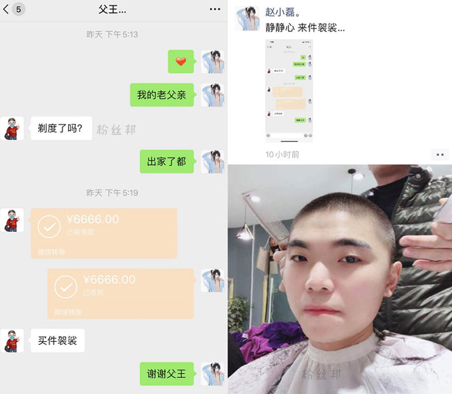 随后大哥打赏了赵小磊“6666”让他买件袈裟,满足了赵小磊的要求。