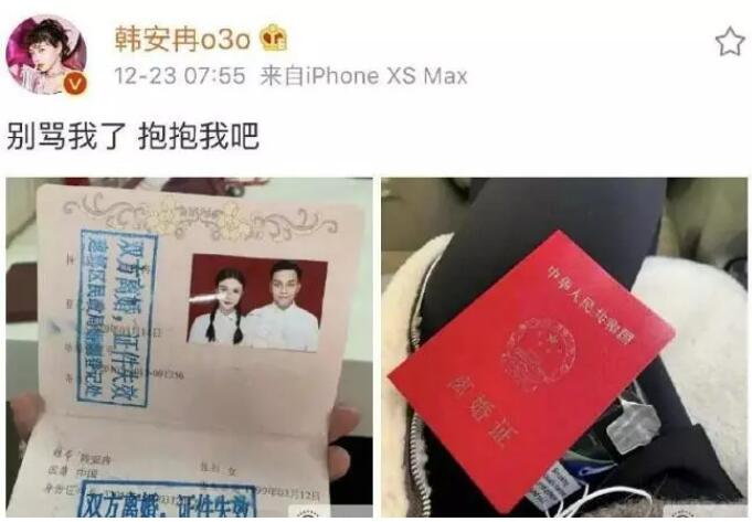 在她第一段婚姻走到尽头之前,韩安冉和小猪先生经常在网络上秀恩爱,离婚之前两人还共同庆祝了“两周年”。