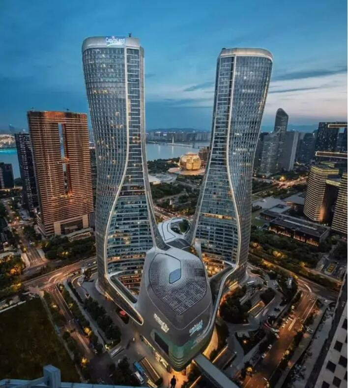 通过这两栋有点“小蛮腰”风格的建筑来看,又是坐落在杭州,应该就是比较有名的杭州来福士中心钱江新城CBD核心位置。