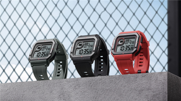 华米AmazfitNeo智能手表的正面使用了复古电子表的设计风格,屏幕为黑白反射式屏幕,即使在户外阳光下也能清晰看见屏幕显示内容。