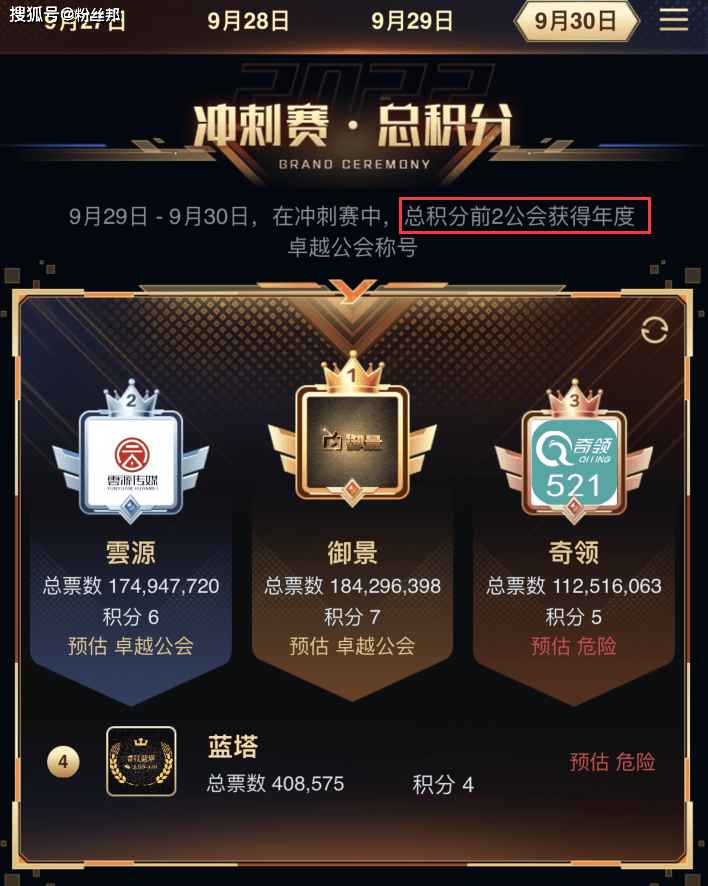 因此最终“卓越”公会两个名额究竟花落谁家,得看位居第三名的“奇领”公会是否会在最后的决赛中上票冲刺拿积分。