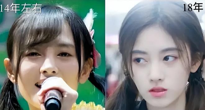 在发型相同和角度相似的情况下,很容易就看出鞠婧祎在这四年里的发量变化。曾经的两股头发加在一起,还没有现在一股发量来的多。