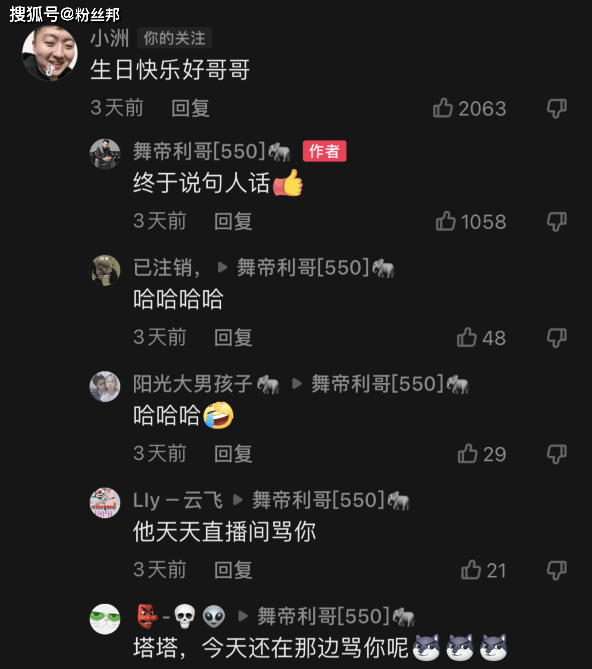而这次小洲这次算是积了口德,前往舞帝利哥的作品下留言祝“好哥哥”生日快乐。这算是小洲比较“正常”的互动了,就连舞帝利哥也调侃他终于说了句人话。