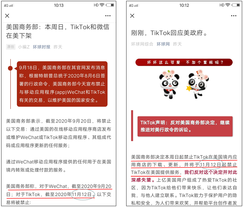 大家可以看看下面的新闻:封禁微信的时间是从9月20日开始的,封禁TikTok的时间却是从11月12日开始的。