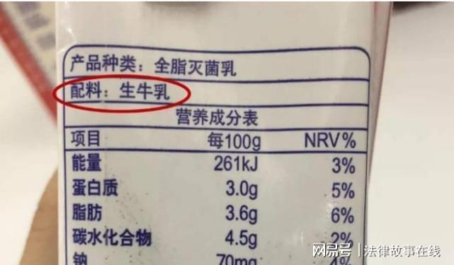 配料表上的第一位是主要成分,如果是生牛乳,则是很不错的牛奶,生牛乳就是刚挤出来的新鲜牛奶,并且配料越少,说明奶越纯,添加剂较少;相反,如果开头是水和全脂乳粉,则不是牛奶,而是乳制品。